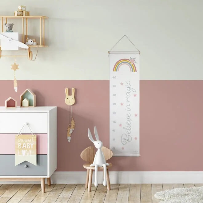 Schattige groeimeter regenboog voor de baby,- of kinderkamer.