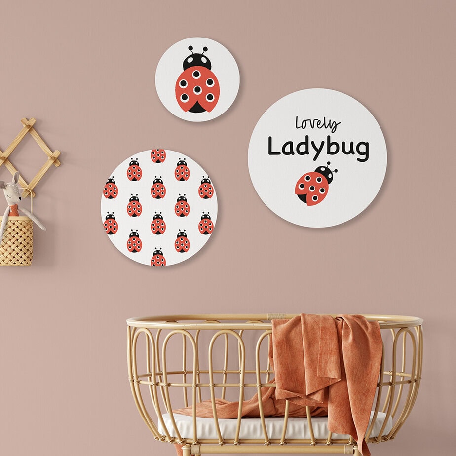 Met deze lieve muurcirkels met lieveheersbeestjes prints geef je de muur van de kinderkamer een schattige uitstraling.