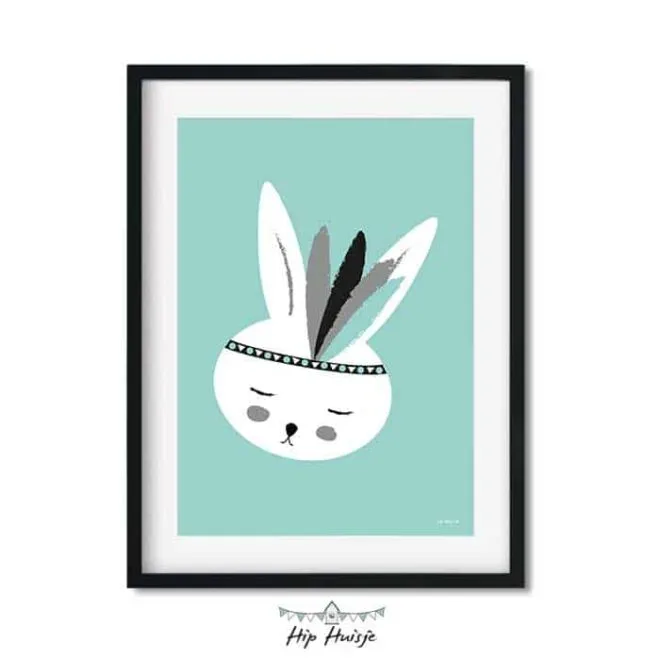 Poster konijntje groen voor een vrolijke kinderkamer.