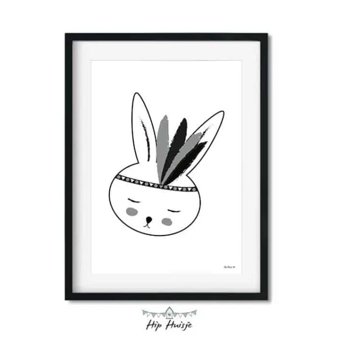 Poster konijntje wit met zwart voor de styling van de kinderkamer.