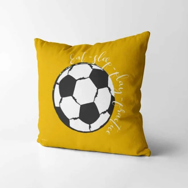 Stoer voetbal kussen okergeel voor de voetbalkamer.